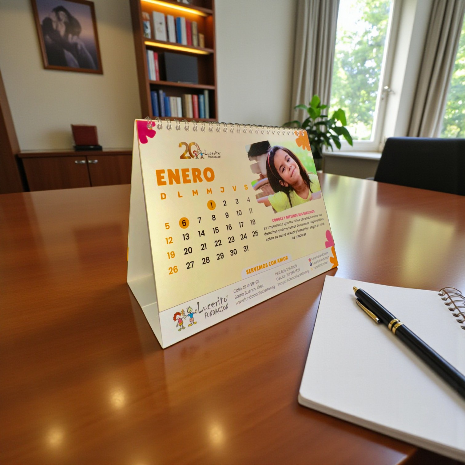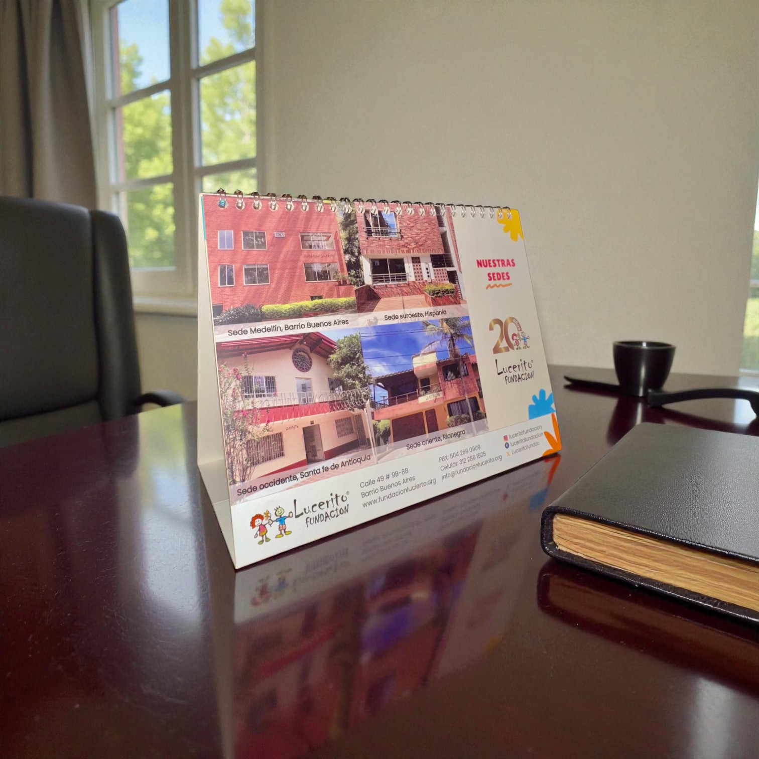 El Calendario Lucerito combina funcionalidad, arte y compromiso social. Cada página presenta ilustraciones inspiradoras, mensajes sobre derechos de la infancia y el reflejo del trabajo que la fundación realiza en 35 municipios de Antioquia. Impreso en papel ecológico, su diseño alegre y educativo lo convierte en una pieza ideal para hogares, oficinas o espacios educativos. Tu compra contribuye a que más niños y niñas reciban atención psicológica especializada y apoyo emocional.